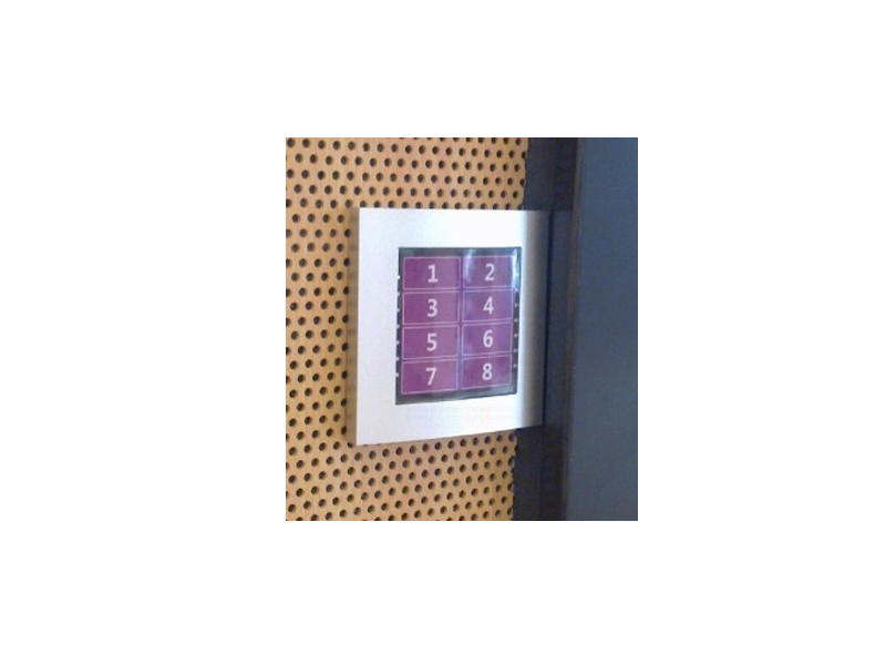 此智能面板采用电容式触摸技术,超长触摸寿命。可根据实际需要更换面板标签,时尚美观。面板的8个按键均可通过电脑编程实现不同的功能,如全开、全关、触发场景、调光等。触摸面板的总线电源要由外部提供。